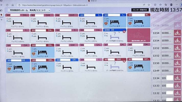 令和5年8月1日より介護支援システム「ライブコネクト」の活用をしております。この「ライブコネクト」はJKA補助事業の福祉機器の整備の補助金により導入することができました。和光苑の全床に見守りセンサーを設置、バイタルセンサーと見守りカメラを必要な居室に配置することで遠隔からでも安否確認・睡眠覚醒などの様子が把握でき、転倒の予防や心拍の状態の確認もできるため、入所者様の生活の質の向上や職員の負担の軽減を実現して入所者様・ご家族・職員・地域の住民の方も安心できる形で今後も和光苑の運営を継続していきます。