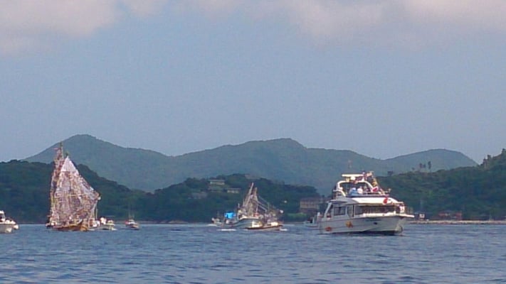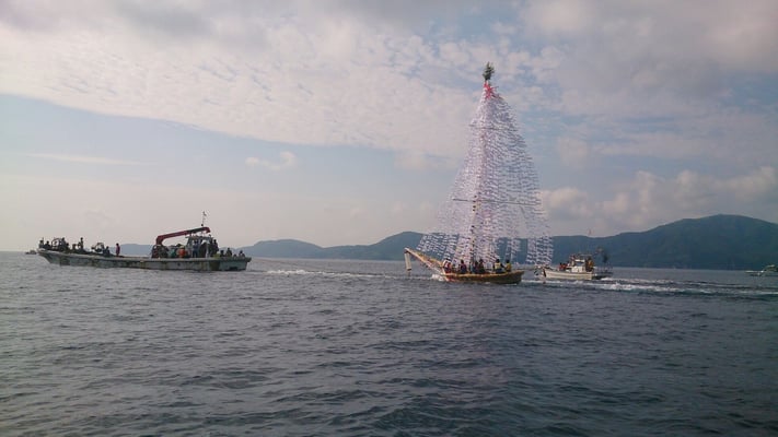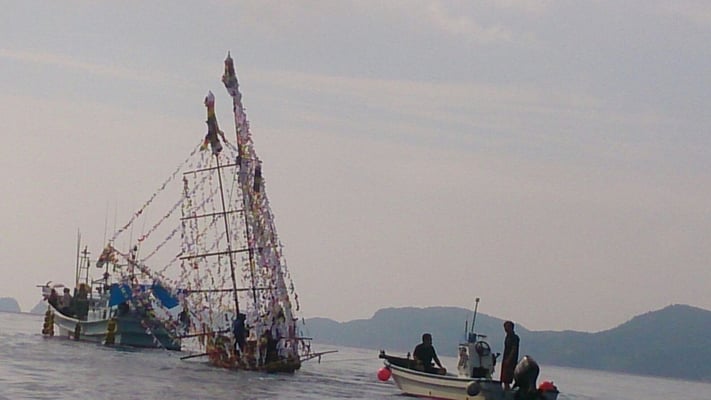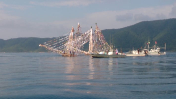 写真は西ノ島福祉会職員が撮った写真で、船は浦郷地区のシャーラ船です。